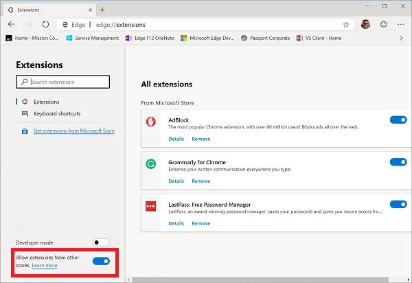 Click on the three dots or the menu icon on the top left of Edge. Click on Extensions.At the bottom left corner of the Extensions page, turn on the toggle for Allow extensions from other stores.Next, navigate to Chrome Web Store, and open the extension that works with DevTools, e.g., ReAct Developer tool from Facebook.Click to Add to Chrome and the DevTools extension will be added to Microsoft Edge!